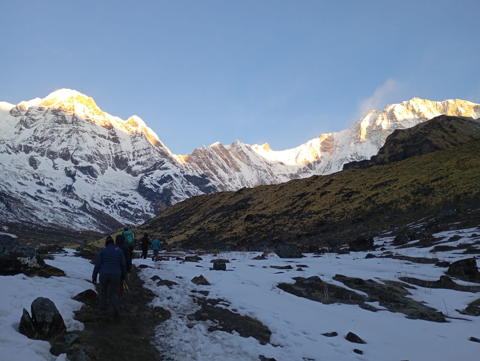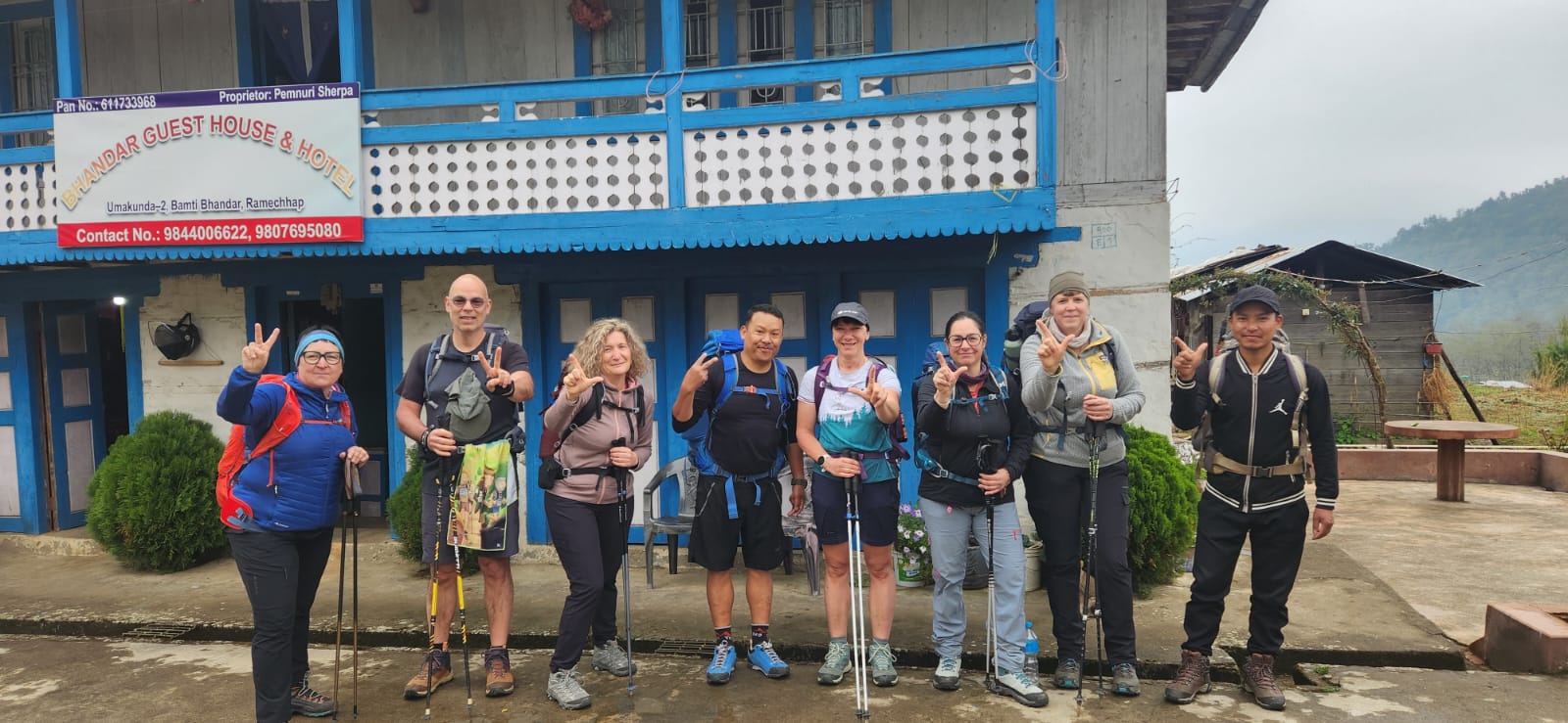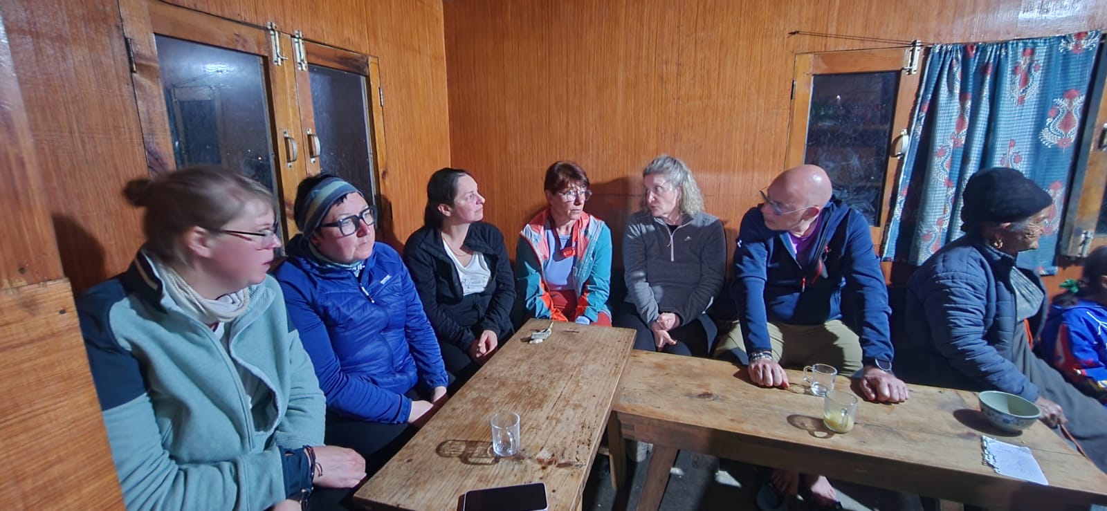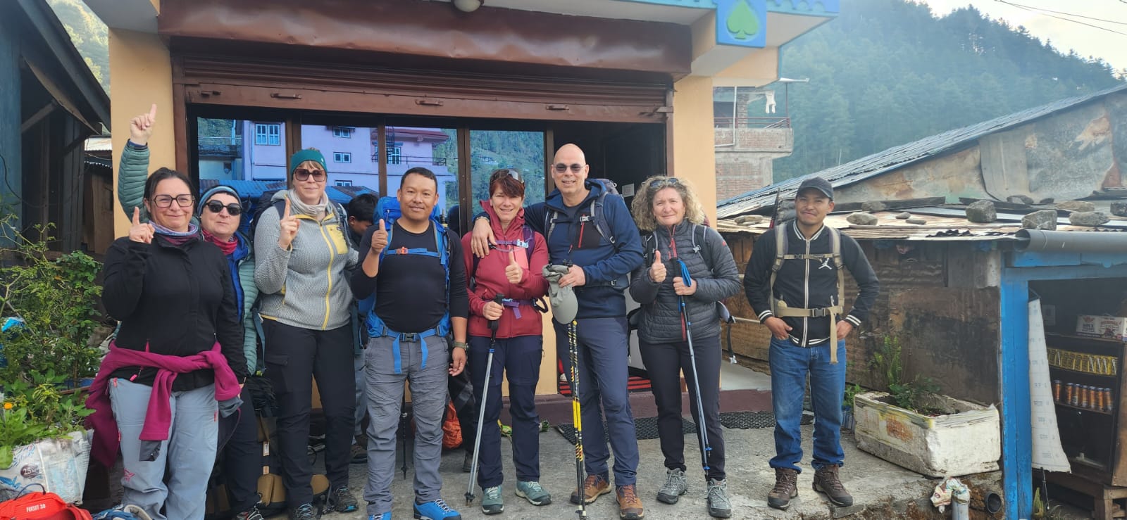 Grâce au programme, mais surtout grâce à notre guide Mohan et à nos incroyables sherpas Subass et Man, ce trek a pris une dimension encore plus magique. Avec eux, nous n’avons pas seulement marché… nous avons aussi partagé des moments de vie. Nous avons même eu l’occasion de danser et de faire la fête certains soirs avec eux. Des moments simples, joyeux, qui créent des souvenirs incroyables.
